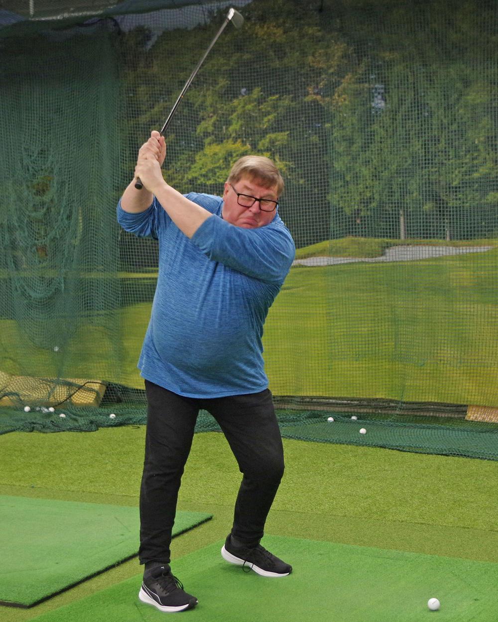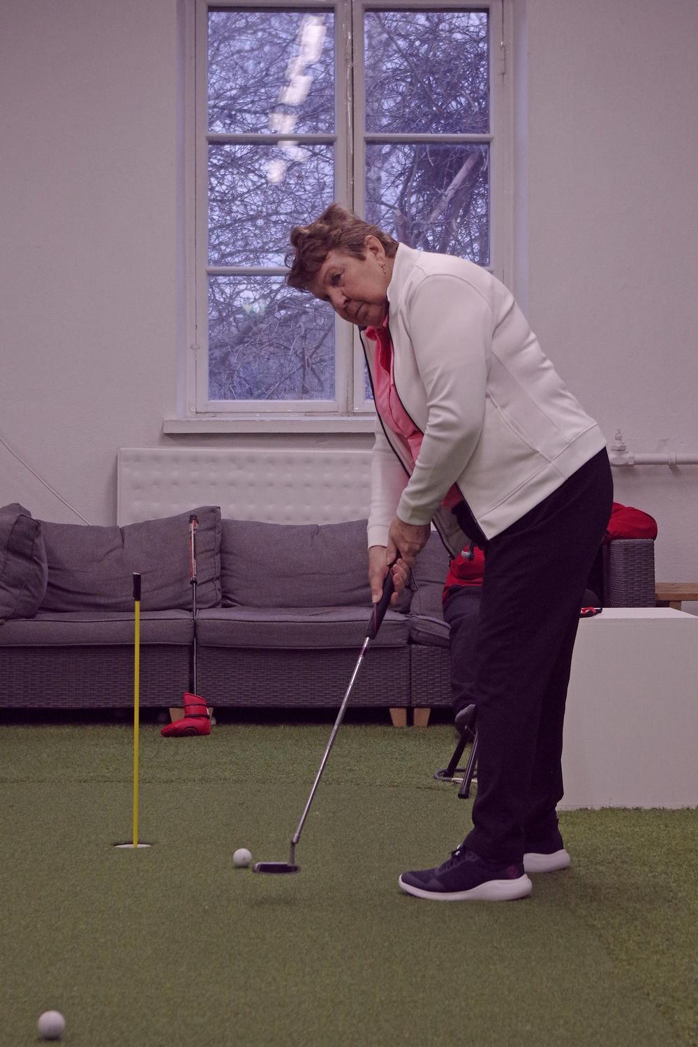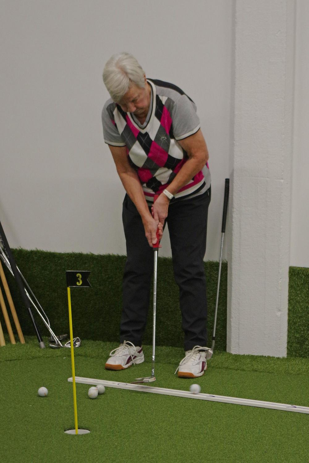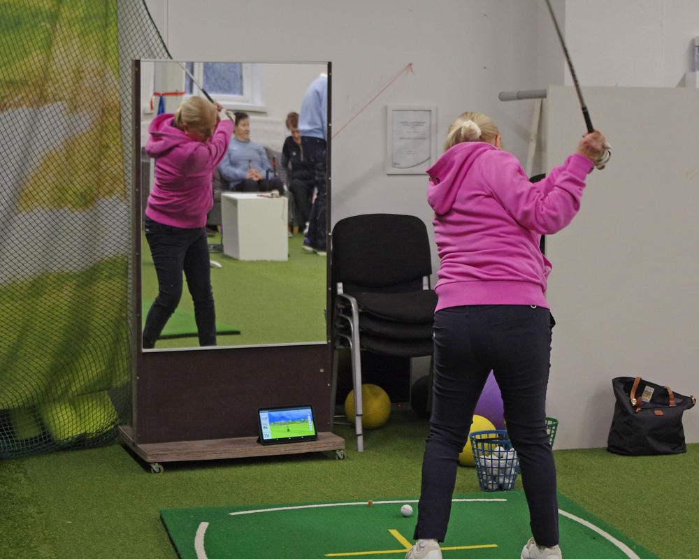Harjoitushallissa voi harjoitella lyöntejä ja putteja. Lyöntiharjoituksia varten kerholla on oma tutka, joka kertoo meneekö pallo suoraan vai kiertääkö. Lisäksi se kertoo mailanpään nopeuden ja pallon lähtönopeuden, näistä kone laskee lyönnille myös pituuden. Noiden arvojen perusteella harjoittelija voi muuttaa lyöntiään ja kehittyä golfpelaajana. Kehitystä saa ehdottomasti aikaan harjoittelulla iäkkäämpänäkin!