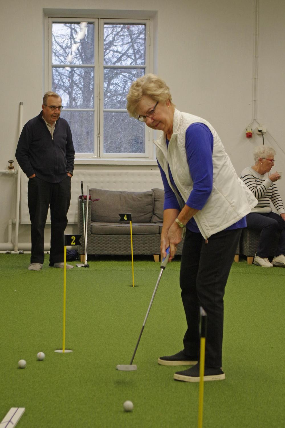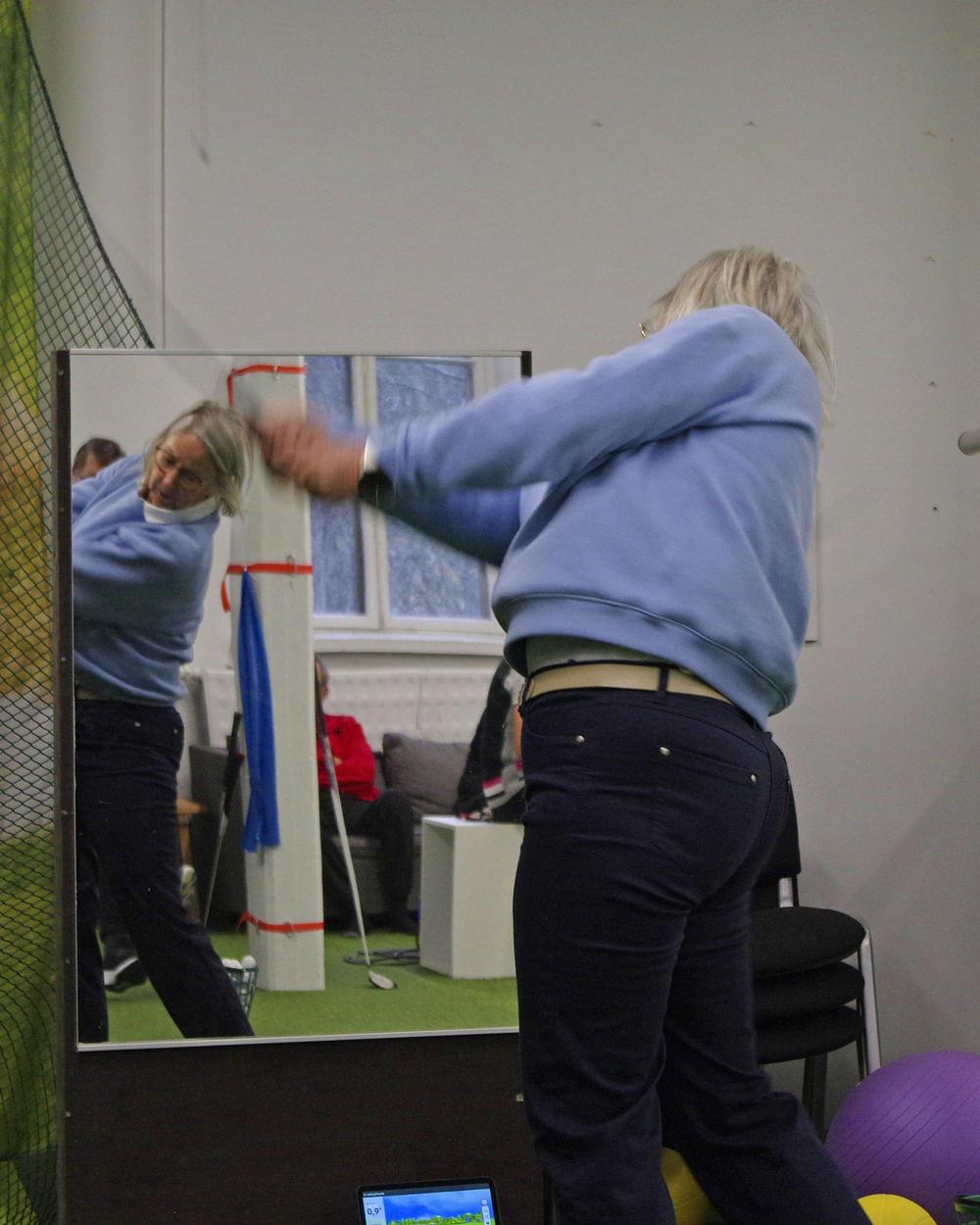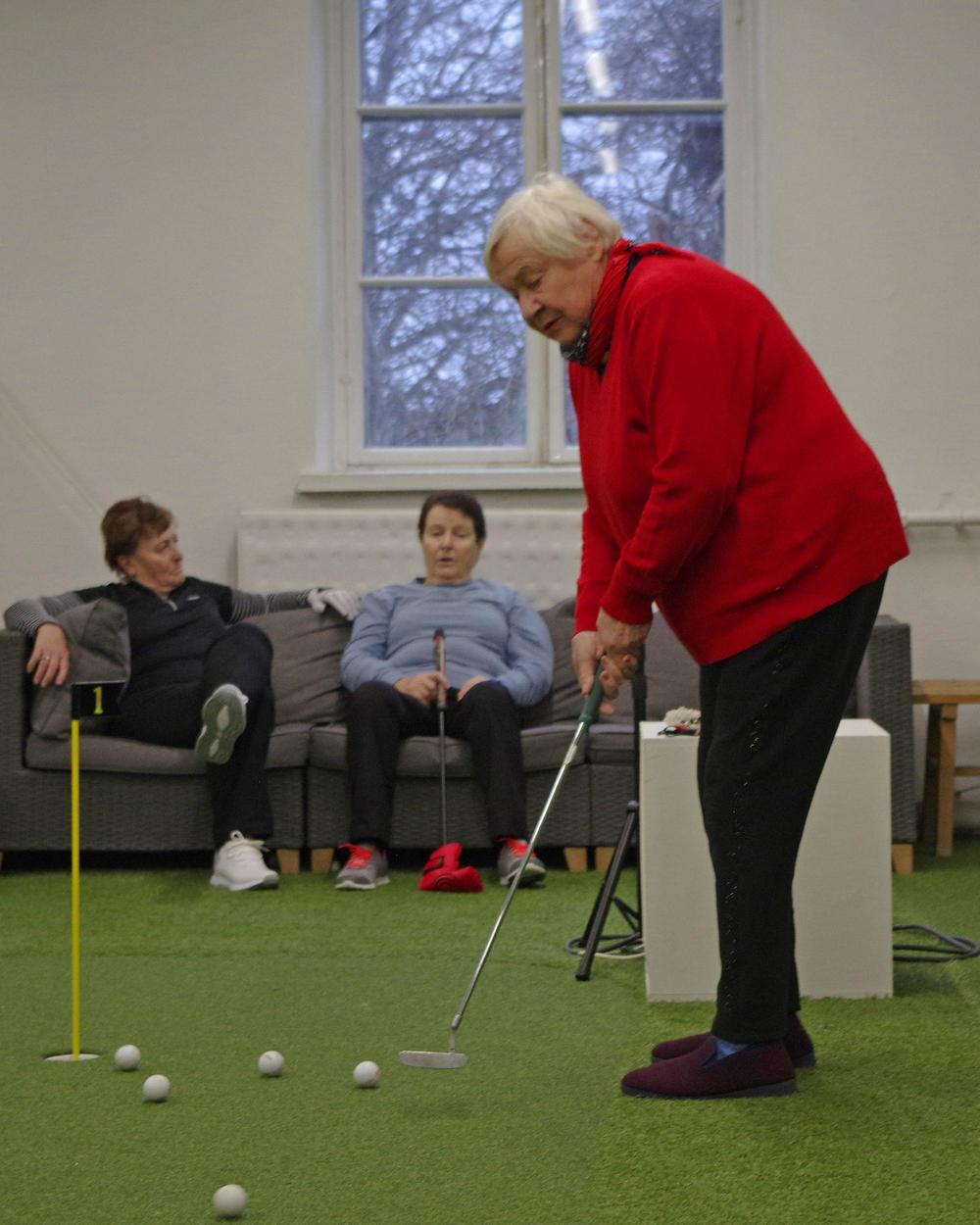 Harjoitushallissa voi harjoitella lyöntejä ja putteja. Lyöntiharjoituksia varten kerholla on oma tutka, joka kertoo meneekö pallo suoraan vai kiertääkö. Lisäksi se kertoo mailanpään nopeuden ja pallon lähtönopeuden, näistä kone laskee lyönnille myös pituuden. Noiden arvojen perusteella harjoittelija voi muuttaa lyöntiään ja kehittyä golfpelaajana. Kehitystä saa ehdottomasti aikaan harjoittelulla iäkkäämpänäkin!