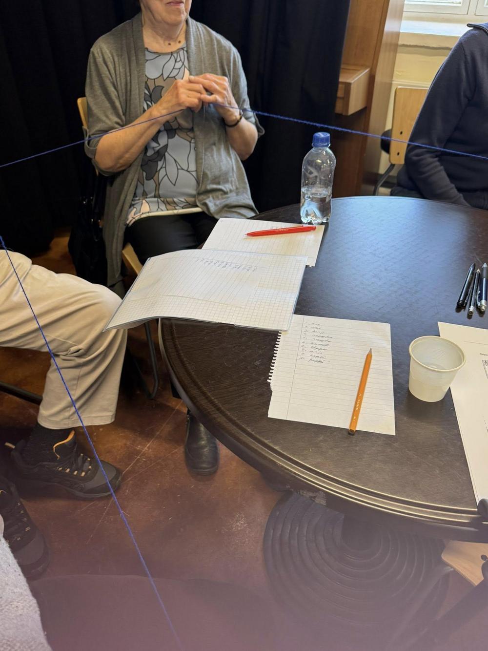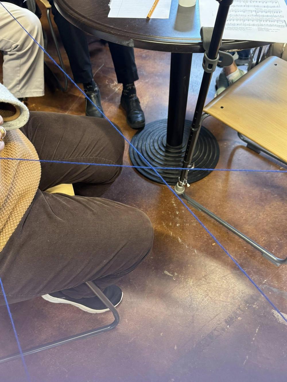 Lopuksi muodostettiin lankakerän avulla ”Ystävyyden verkosto”. Siinä sininen villalankakerä kulki kädestä käteen ja ristiin rastiin henkilöltä toiselle ja viimeisen jälkeen lankaa alettiin keriä takaisin. Kerän tullessa taas kohdalle, kukin kertoi kaikki nimensä ja Liisa kysyi jonkin kysymyksen. Näin lanka saatiin kerittyä takaisin kerälle ja olimme oppineet toisistamme paljon uusia asioita.