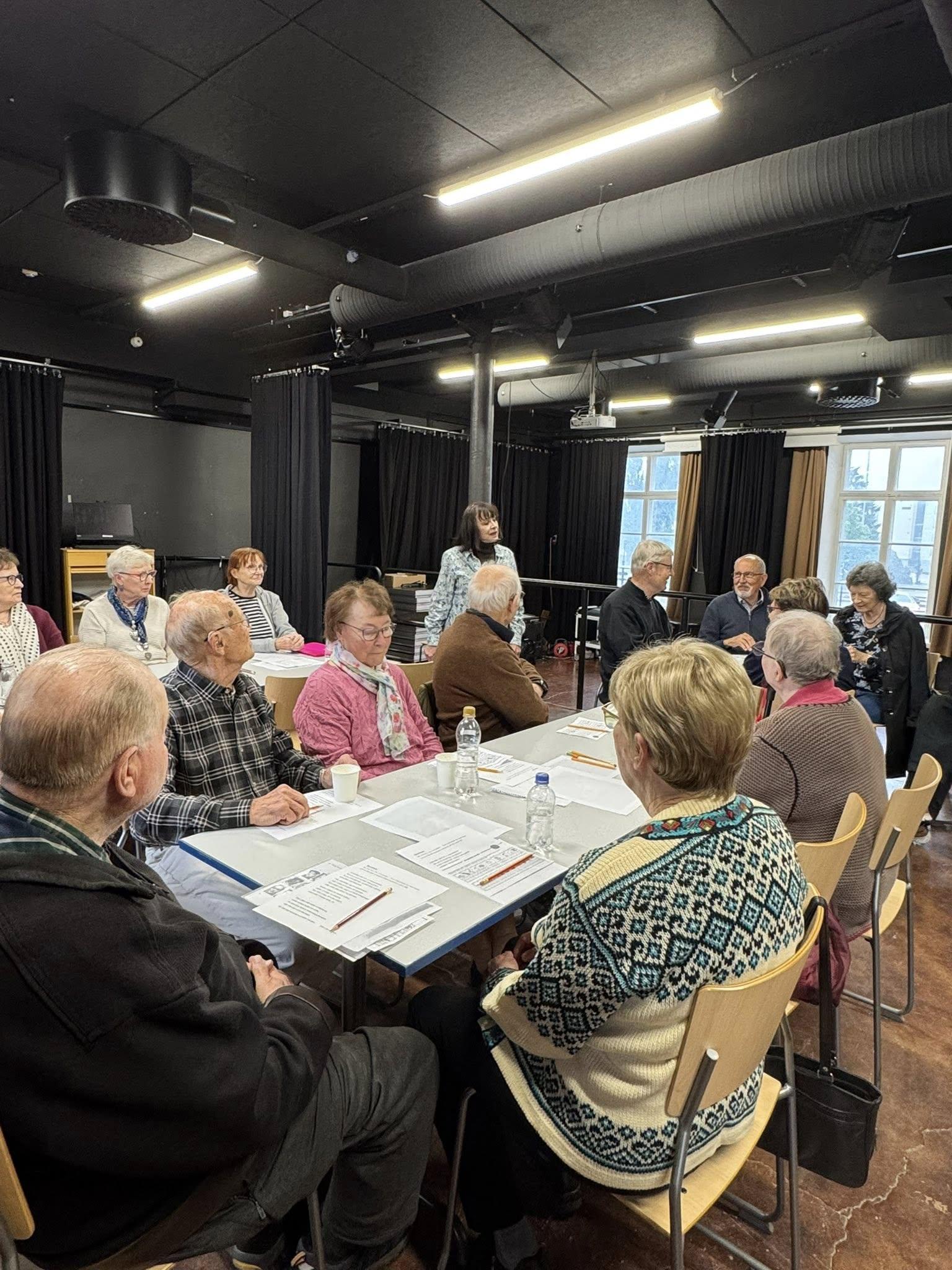 Kerhotehtävinä oli kuvamuistiharjoituksia, rimmaavia arvoituksia ja kansanlauluvisa. Välillä notkistettiin niveliä ja heiluteltiin raajoja Caritan ohjaamassa tuolijumpassa.