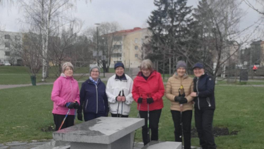 Luistimet olisi ehkä olleet parempi valinta 22.1. sauvakävelykerholaisille kuin nastakengät. Liukkaudesta huolimatta 6 reipasta senioria teki yhteisen aamulenkin jokivarren maisemissa.