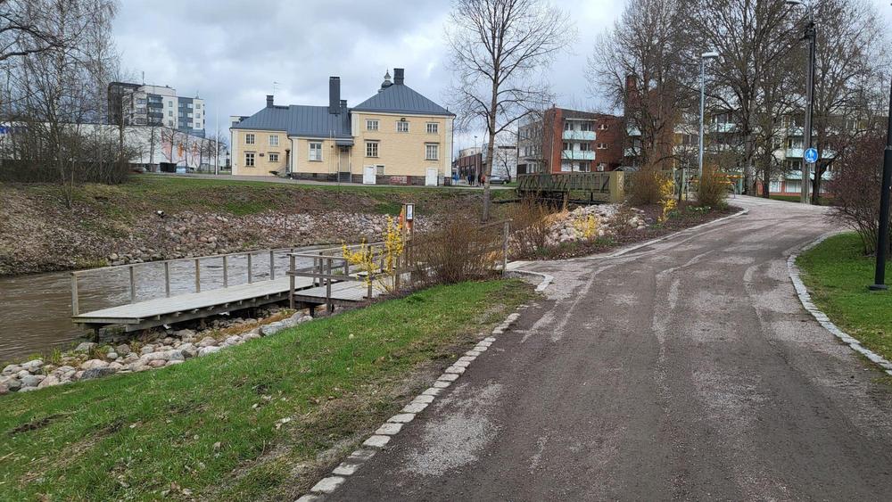 Sauvakävelykerhon keväinen kävely kulki Kirsikkapuistoon ja joenvartta Koskenrantaan.