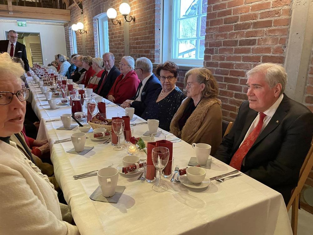 Glögin ja puheenjohtaja Hannu Heikkilän tervetuliaissanojen jälkeen oli vuorossa ansiomerkkien jakoon. Paikalla olivat pronssisen ansiomerkin saaneet Leila Eklund, Olle Contines, Riitta Apponen, Cuy Catani ja Päivi Aitkoski-Catani sekä hopeisen ansiomerkin saanut Leila Heikkilä.