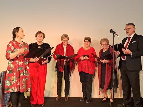 Seuriksen sekakuorossa on mukana kymmenkunta senioria ja paikalla olleet kuorolaiset esittivät kuoronjohtaja Eila Hartikaisen johdolla kolme jouluista laulua, joista uudempaa kantaa edusti ”Avaruus”-kappale.