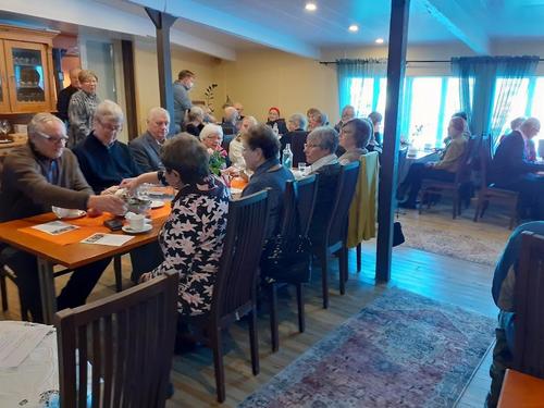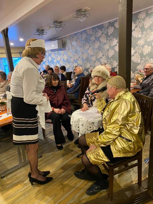 Juhlan ohjelma noudatteli kerhon toiminnan periaatteita eli ohjelmassa oli aivojumppaa, visailua, muisteluita, liikuntaa, musiikki-esityksiä, yhteislaulua, huumoria, yhdessäoloa ja porukalla viihtymistä. Ja tietenkin kerhon vetäjien pöytiin tarjoilema kahvi ja upean monipuolinen tarjoilupöytä kruunasivat onnistuneen juhlan.