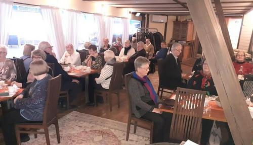 Tervetulomaljaksi kohotettiin vesilasilliset ja alkulauluna laulettiin yhteisesti ja komeasti Varpu Laisin johdolla ja Klaus Pennasen haitarilla säestämänä ” Rati-riti-ralla”. Hyvin sanat osattiin ulkomuistista.