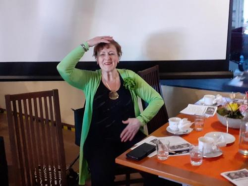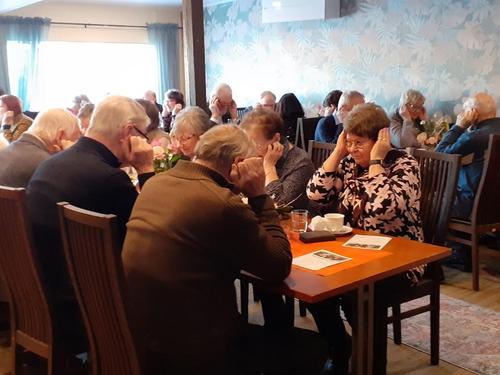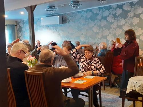 Liisa Simovaara veti rautaisella kokemuksellaan ja taidollaan monipuolisen aivojumpan, joka ei varmasti jättänyt ketään osallistuista kylmäksi tai ulkopuoliseksi. Aivojumpan jälkeen olikin mukavaa kuulla kerhon perustajan Mirjam Myllykosken muisteluita kerhon syntyajoilta ja alkutaipaleelta. Mirjam ja Aulis Myllykoskea on pitkälti kiittäminen muistikerhon nykyisenkin toimintamallin suunnittelusta ja toiminnan liikkeelle saamisesta.