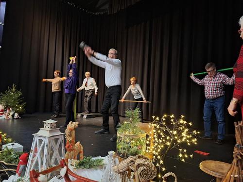 Yhdistyksemme liikuntakerhoista golffarit ja kuntosalikerho esittelivät toimintaansa elävinä näytöksinä. Keilakerho- ja sauvakävelykerho harrastivat verbaaliakrobatiaa tarinan kerronnan muodossa.