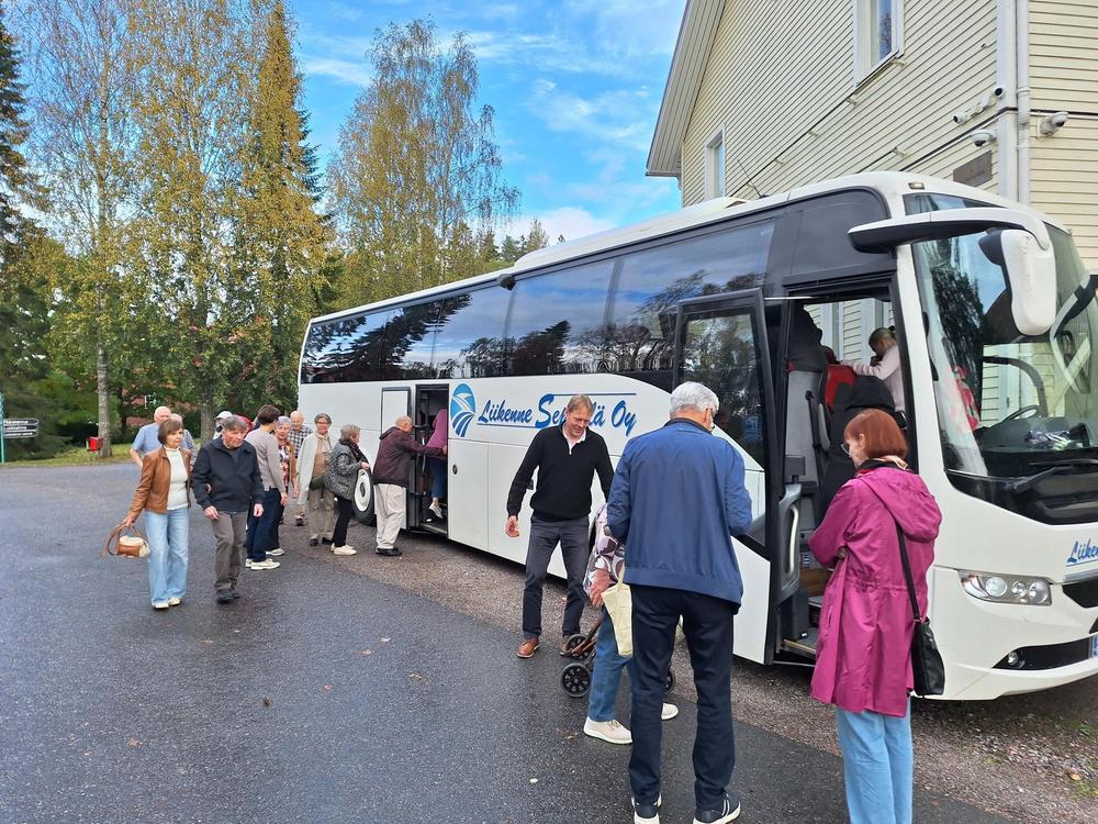 Syyskuulla jatkoimme kesäkuun kiertoajelua ja tutustuimme kuntamme kyliin ja maaseutuun. Seppälän bussilla menimme ensin eteläosiin Arola-Jokelanseudulle ja Nummisiin. Osallistujia oli täysi bussilastillinen.