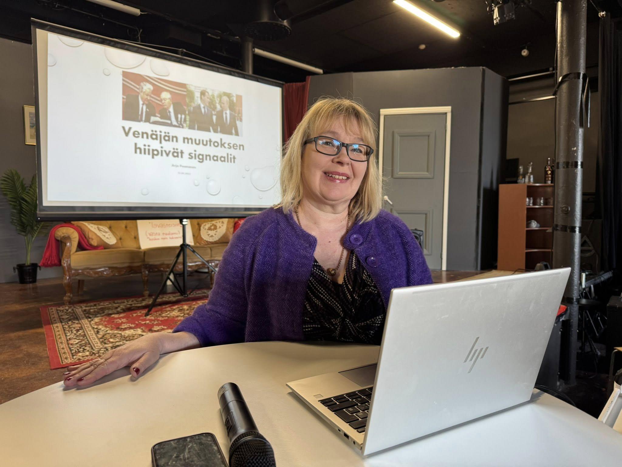 Viitisenkymmentä senioria, joukossa myös aivan uusia jäseniä, oli saapunut huhtikuun kuukausikokoukseen kuuntelemaan Ilta-Sanomien palkitun erikoistoimittajan, Arja Paanasen, kokemuksia Neuvostoliitosta ja Venäjältä.