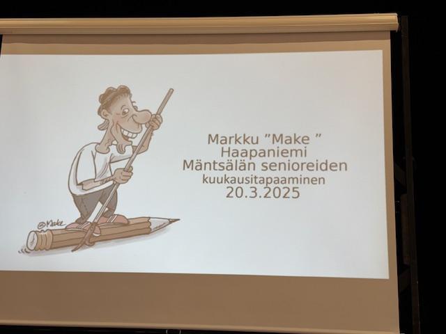 Maaliskuun kuukausitapaamisessa meillä oli oivallinen tilaisuus tutustua luultavasti kaikille osallistujille niin tuttuun, mutta samalla niin vieraaseen aiheeseen eli pilapiirrosten tekemiseen. Vieraamme Markku " Make" Haapaniemi on alan pitkän linjan mäntsäläläinen ammattilainen ja hän perehdytti meitä kuviensa avulla pilapiirrosten tekemisen maailmaan.