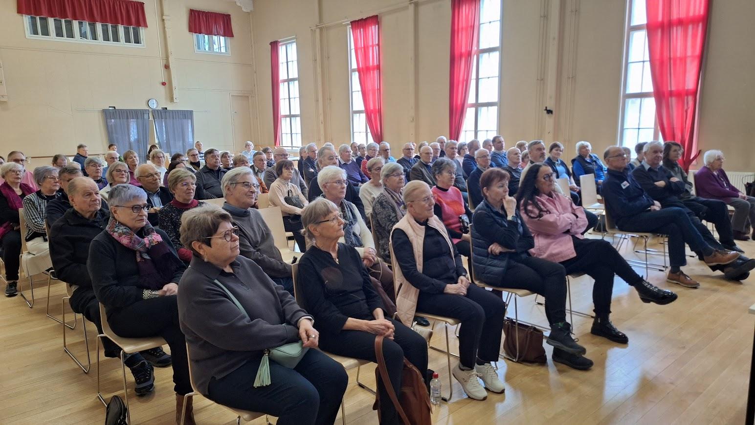Tilaisuus oli samalla yhteinen syntymäpäiväjuhla tänä vuonna tasavuosia ( 65, 70, 75, …) täyttäville jäsenillemme. Puheenjohtaja Merjan välittämät onnittelut, kakkukahvit ja yhteisesti esitetty onnittelulaulu aloittivatkin tapaamisen.