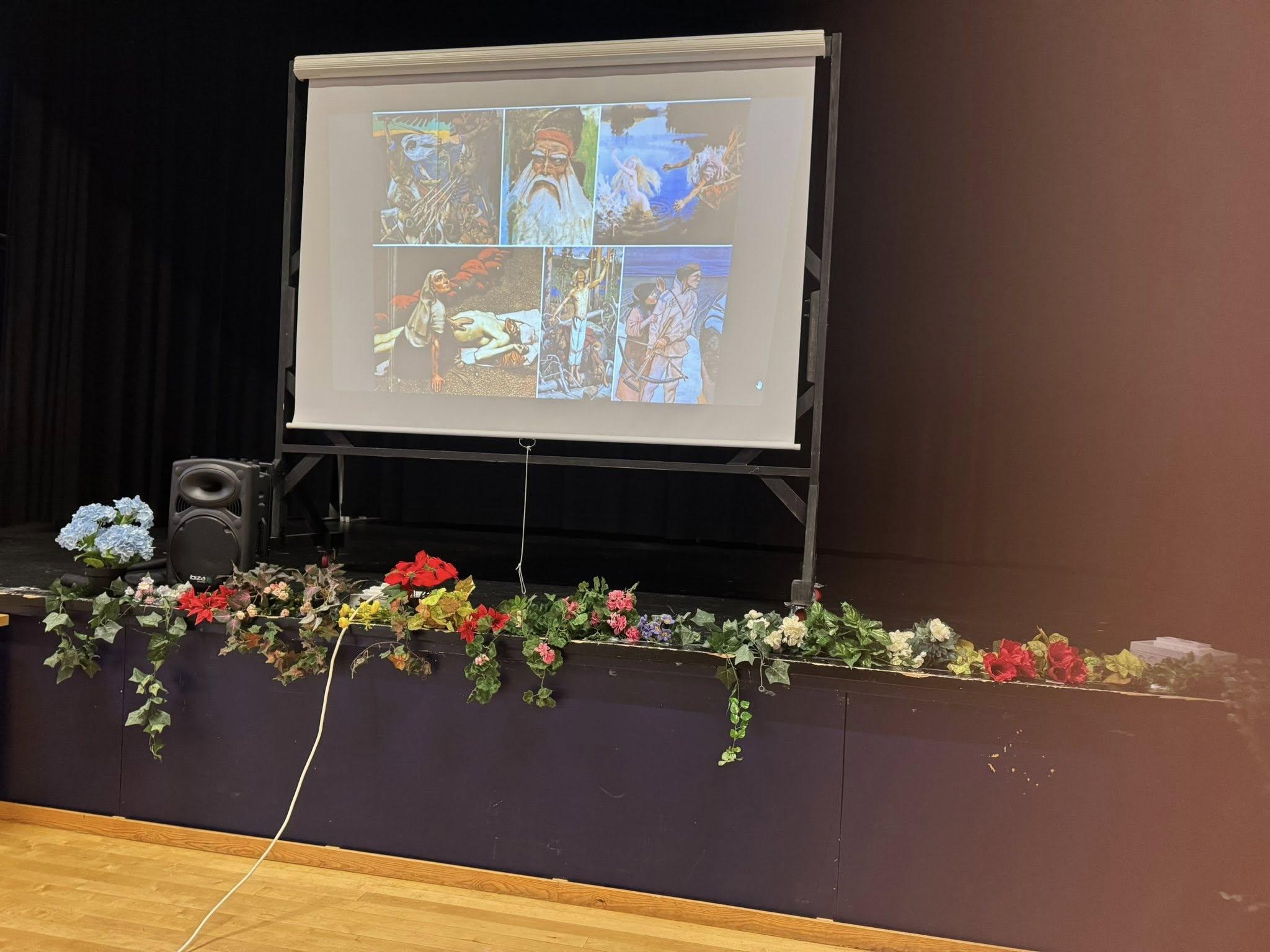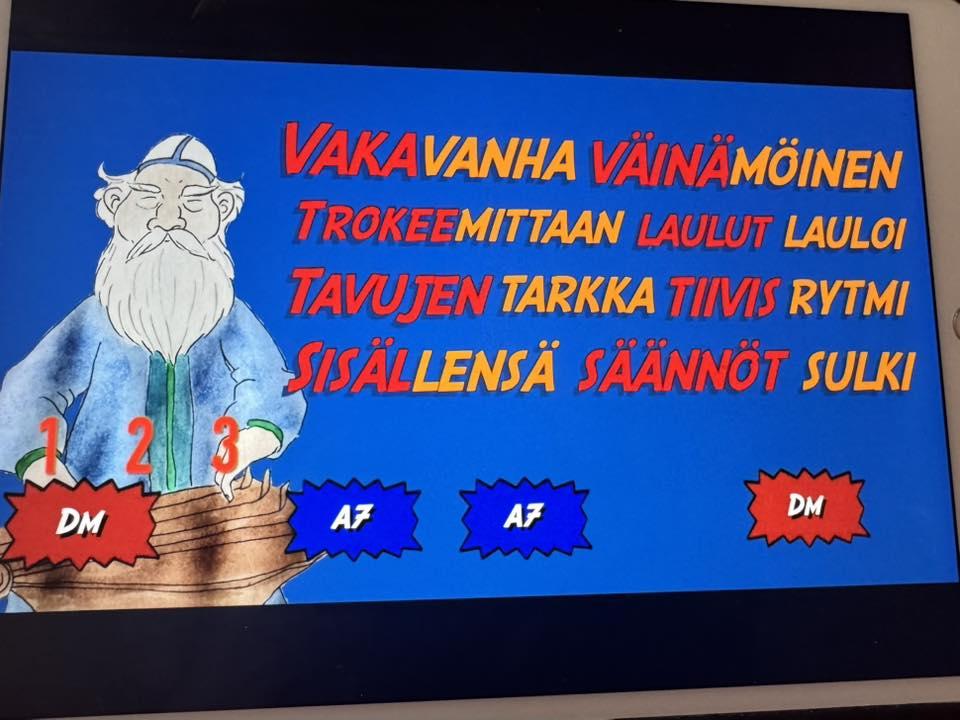Kalevala-osuus alkoi valkokankaalta nähdyllä Ylen Areenasta löytyvällä Kalevala kolmessa minuutissa -videolla. Sen jälkeen lauloimme yhdessä Tuomaksen kalevalaisen opetuslaulun.