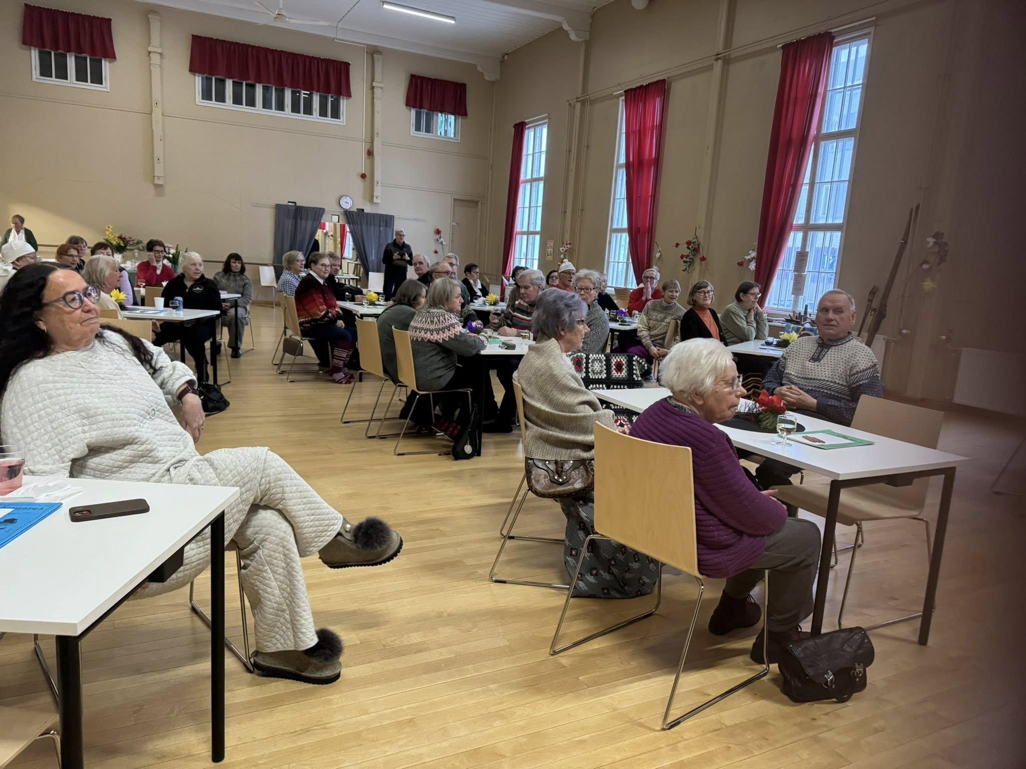 Järjestimme jäsenistöllemme perjantaina 27.2. Seurojentalolla klo 15–20 hilpeän leikkimieliset kalevalaistyyliset laskiaiskarkelot. Paikalle saapui noin 60 jäsentä. Kutsussa oli toivottu talvisen kotoisaa pukeutumista mielikuvitusta käyttäen – mielellään kalevalaisittain – ja moni olikin nähnyt vaivaa asunsa eteen.