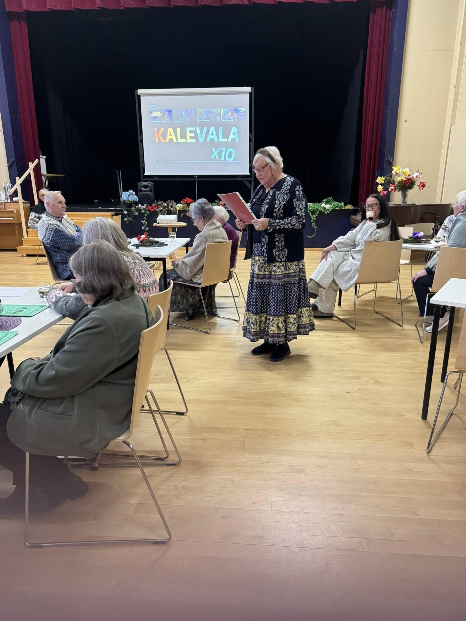 Seuraavaksi testattiin Kalevala-tietämystä Leilan laatimassa tietovisassa. Viisi parasta palkittiin, ja näin kalevalainen osuus päättyi ruokailuun.