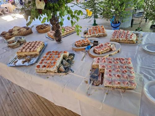 Ennen virallisen tilaisuuden alkamista juhlavieraat nauttivat Mäntsälän suurlavan maineikkaan suolaisen makean kahvipöydän antimista iloisen puheensorinan täyttäessä juhlasalia.