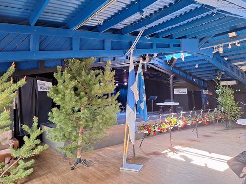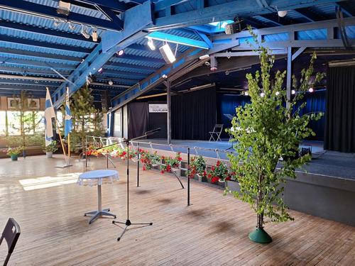 Mäntsälän suurlava oli koristeltu keväisen kauniiksi vastaanottamaan Mäntsälän senioreiden 40-vuotisjuhlaan saapuvia juhlavieraita.