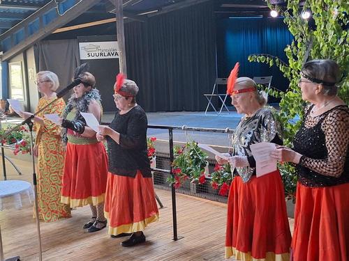 Juhlan todellisena loppukevennyksenä saimme nauttia tanssi-esityksestä, jonka tarjosi Mäntsälän senioreiden oma nelihenkinen Senior Can-Can-ryhmä. Komeasti nousi jalka ja hameenhelma tanssin pyörteissä ja esityksen ajan salin halki kaikui valtavat suosionosoitukset ja ihailevat vihellykset.
