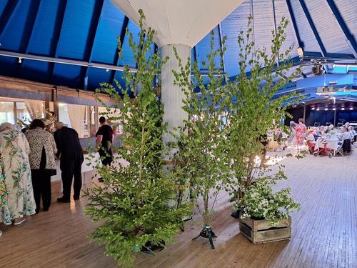 Juhlasalin koristelun teemana oli " Metsä" . Koristelun pääarkkitehteina olivat toimineet yhdistyksen emäntä ja isäntä Sirkka ja Antero Päivärinta. Pöydät oli kauttaaltaan "kukitettu" todella keväisen värikkäästi.